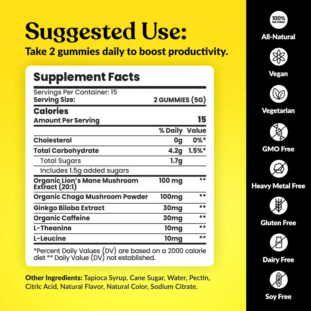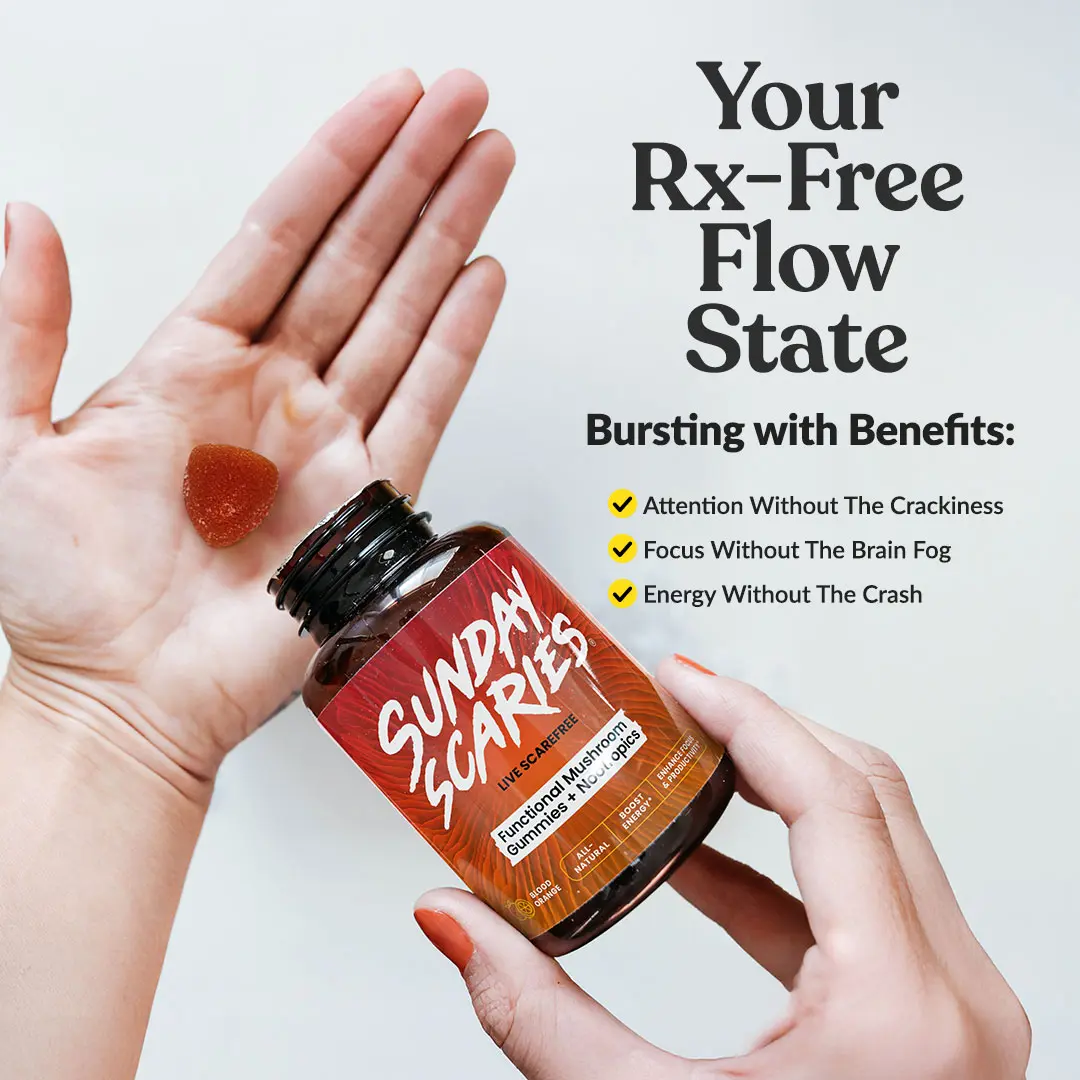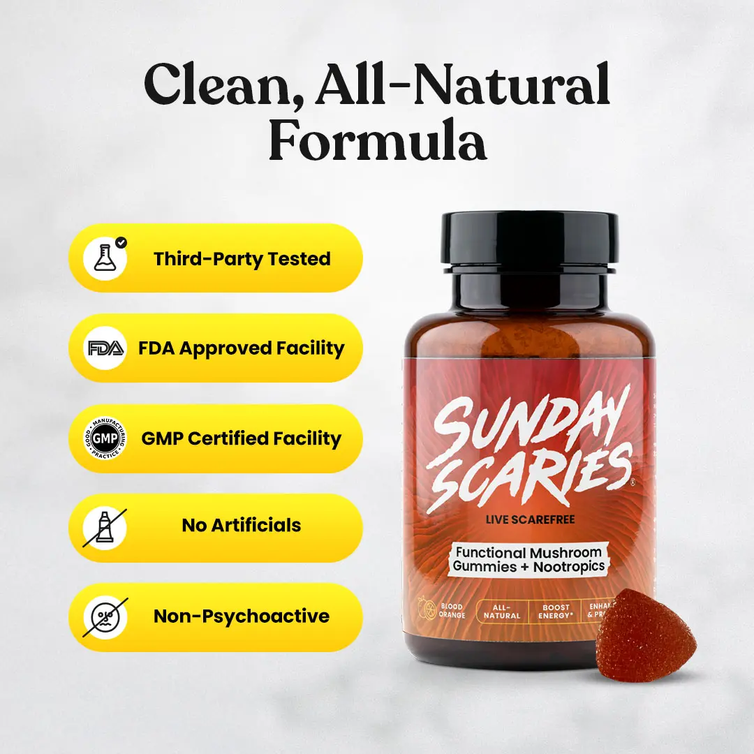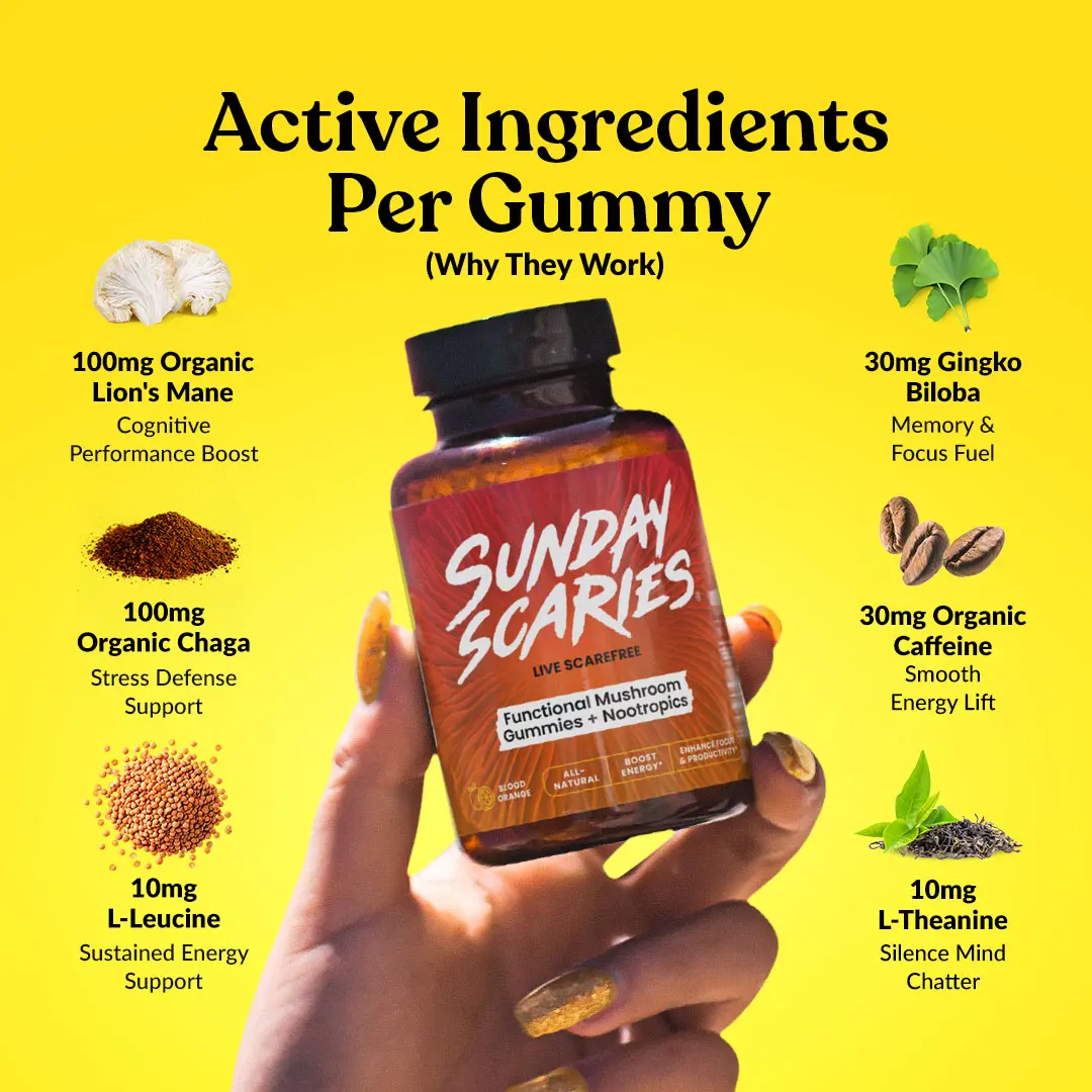 Sunday Scaries Mushroom Gummies for Productivity with 100mg Organic Lion’s Mane & Chaga | Enhance Focus & Energy –