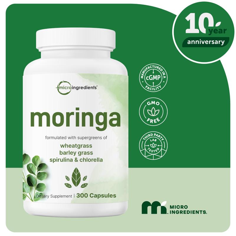 Moringa Oleifera, 300 Capsules with Supergreens Blend of Wheatgrass, Barley Grass, Spirulina, & Chlorella