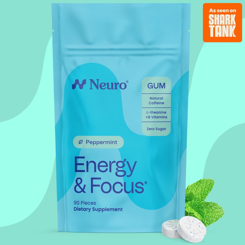 Neuro Peppermint Energy & Focus Gum/Mints (90 Pieces) | Sugar Free with Natural Caffeine, L-theanine, Vitamin B12 &