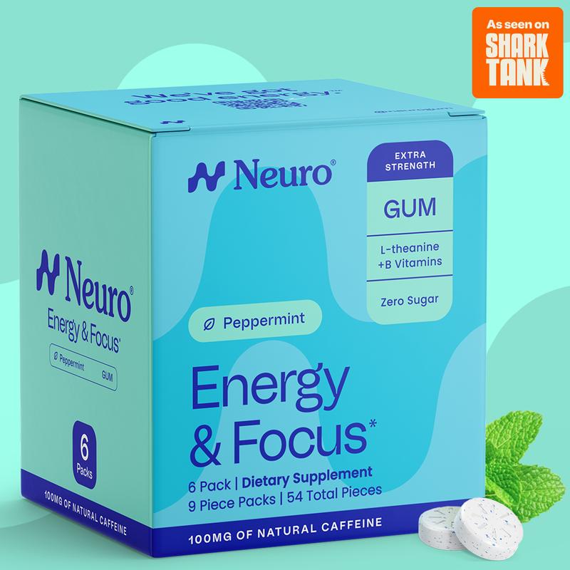 Neuro Peppermint Extra Strength Energy & Focus Gum/Mints | Sugar Free with Natural Caffeine, L-theanine, Vitamin B12 &