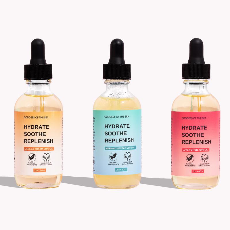 Yoni Oil Trio Bundle – Vanilla Cream, Love Potion & Mermaid | Hydrating Feminine Oil for Daily Freshness, Moisture &