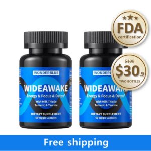 WONDERBLUE WideAwake Energy Focus Detox Supplement 60 Veggie Capsules FDA Certified Milk Thistle Turmeric Taurine