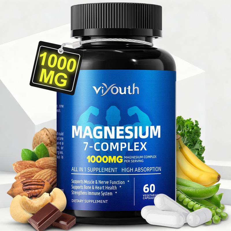 Viyouth 1000mg 7-Type Magnesium Complex with Zinc | Multi-Benefit Formula for Calm, Deep Sleep, Muscle & Nerve Support