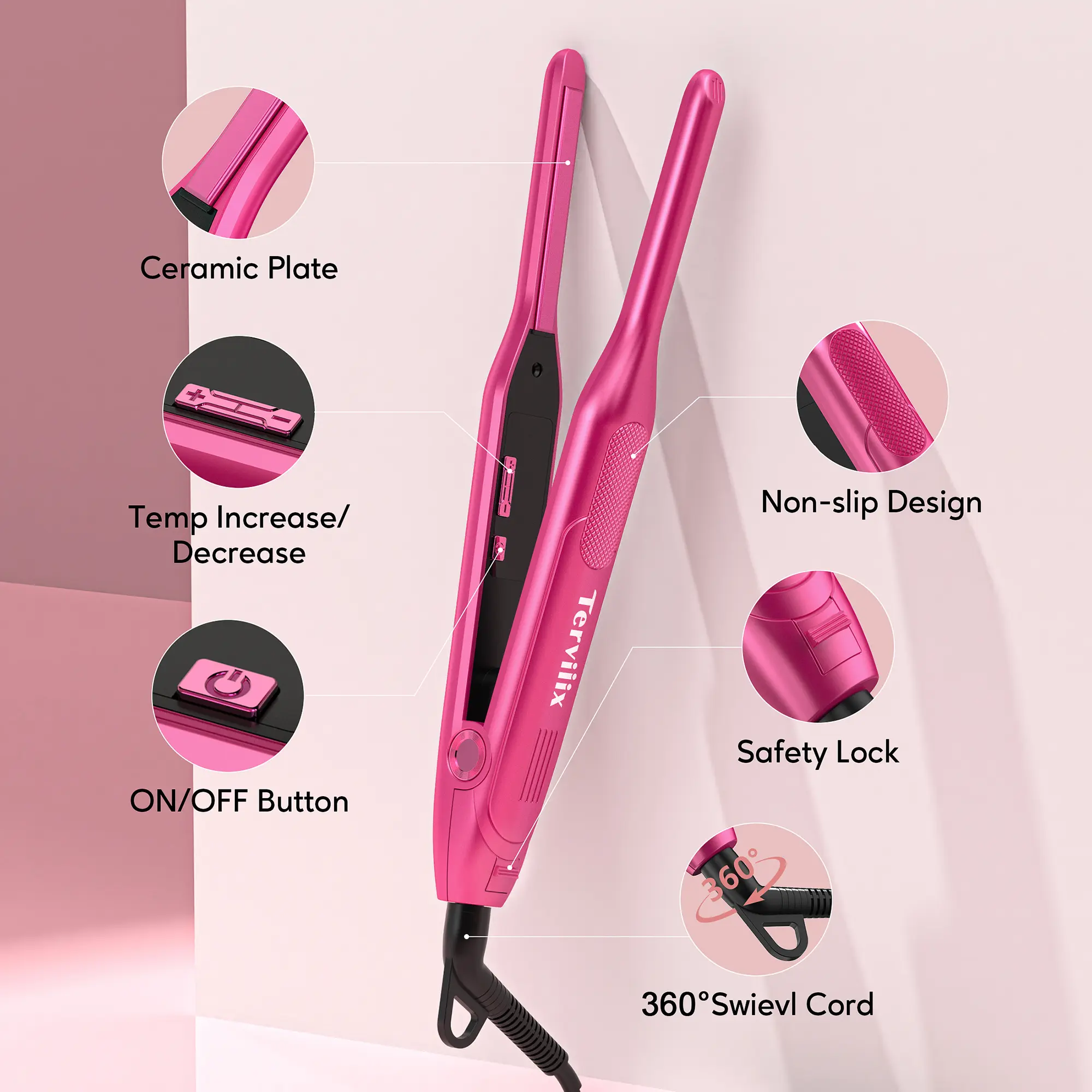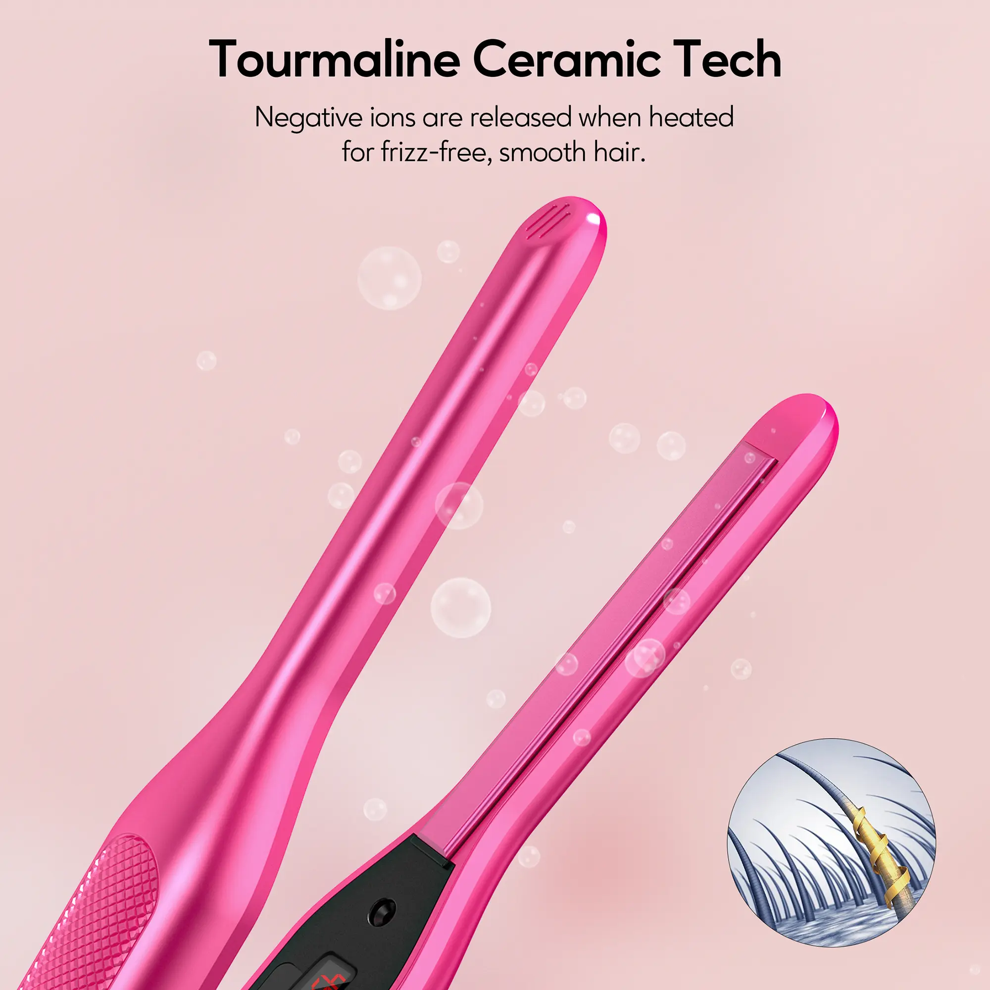 - 3X Less Damage: Terviiix small flat iron with ceramic tourmaline heating plates generates negative ions to smooth down opened hair cuticles, sealing in hair’s own natural oils and moisture which reduces the frizz and avoids damaging the hair while styling.