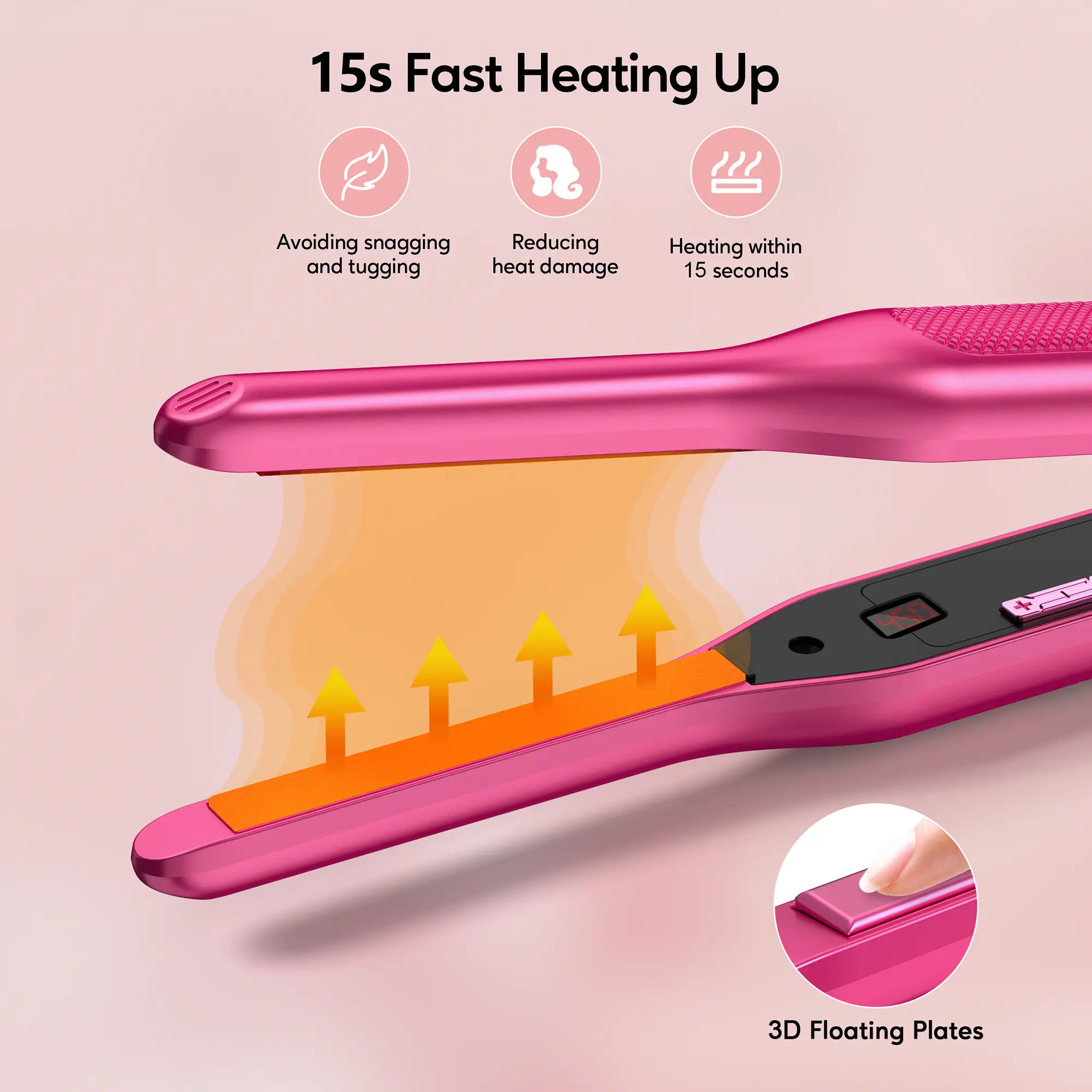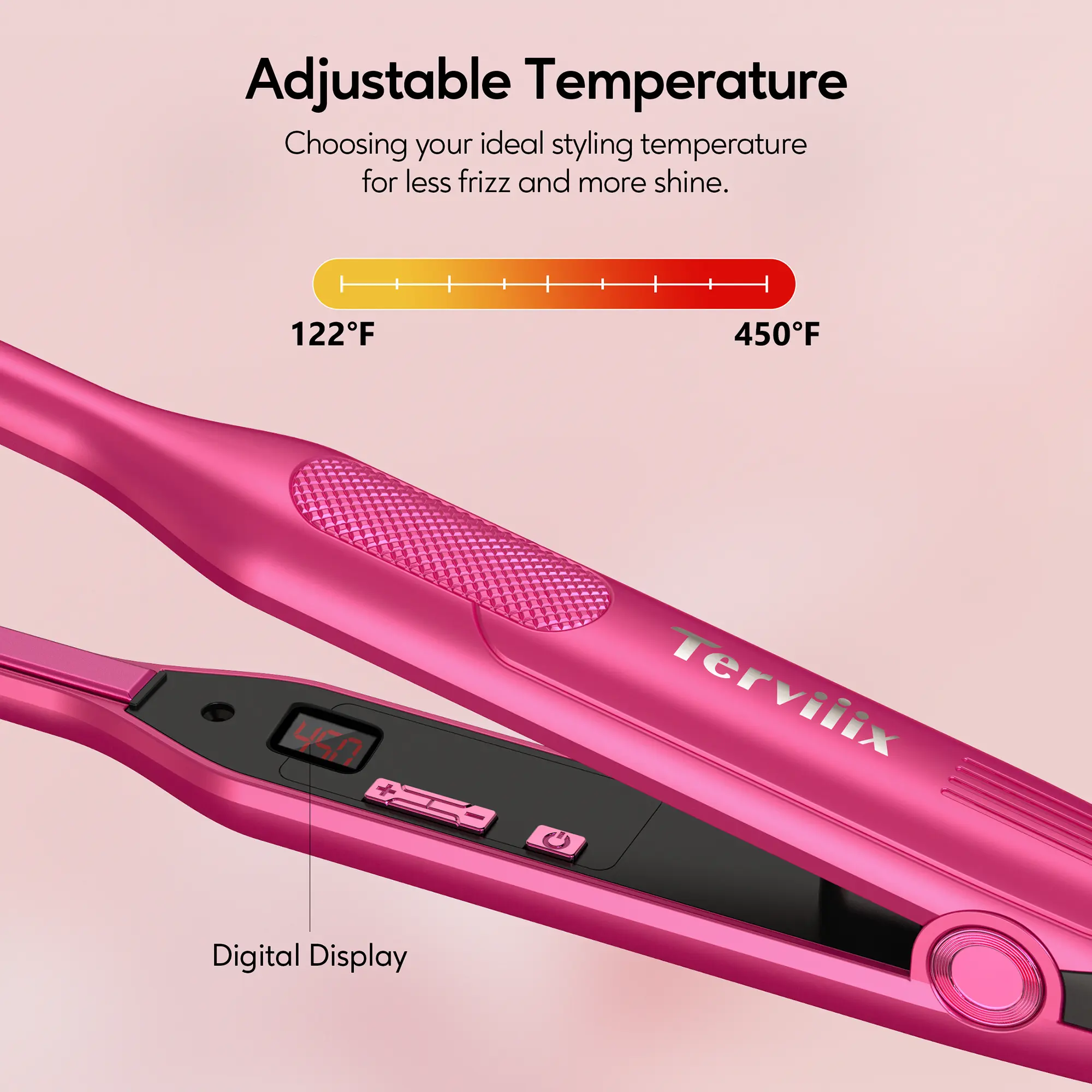 - Digital Display: The LCD screen displays temperature settings (122°F to 450°F) clearly so you can choose the best one for your hair type.