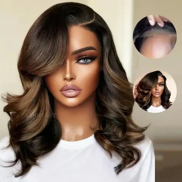 Pre-Styled Body Wave Glueless Layer Wavy Bob Wig Reddish Brown / Blonde Highlight /Chocolate Brown/99J