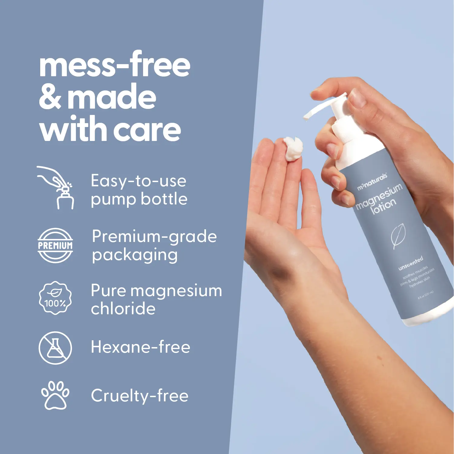 - Skin-Loving Ingredients: Formulated with Magnesium, Hydrolyzed Collagen, Stem Cell Extract, Coconut Oil, and Shea Butter to support hydration, comfort, and overall skin wellness. Our organic magnesium lotion – magnesium glycinate lotion are made in USA with domestic and globally sourced ingredients. M3 Naturals is a brand that contains products that contain natural ingredients and other ingredients.