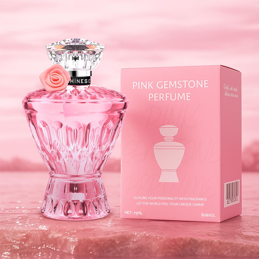 Valentine’s Day Gift: Pink Gemstone Perfume for Women (75ML) | Romantic Fresh Fruit Scent: Orange/Bergamot Top, Black