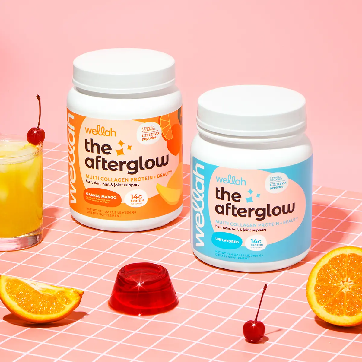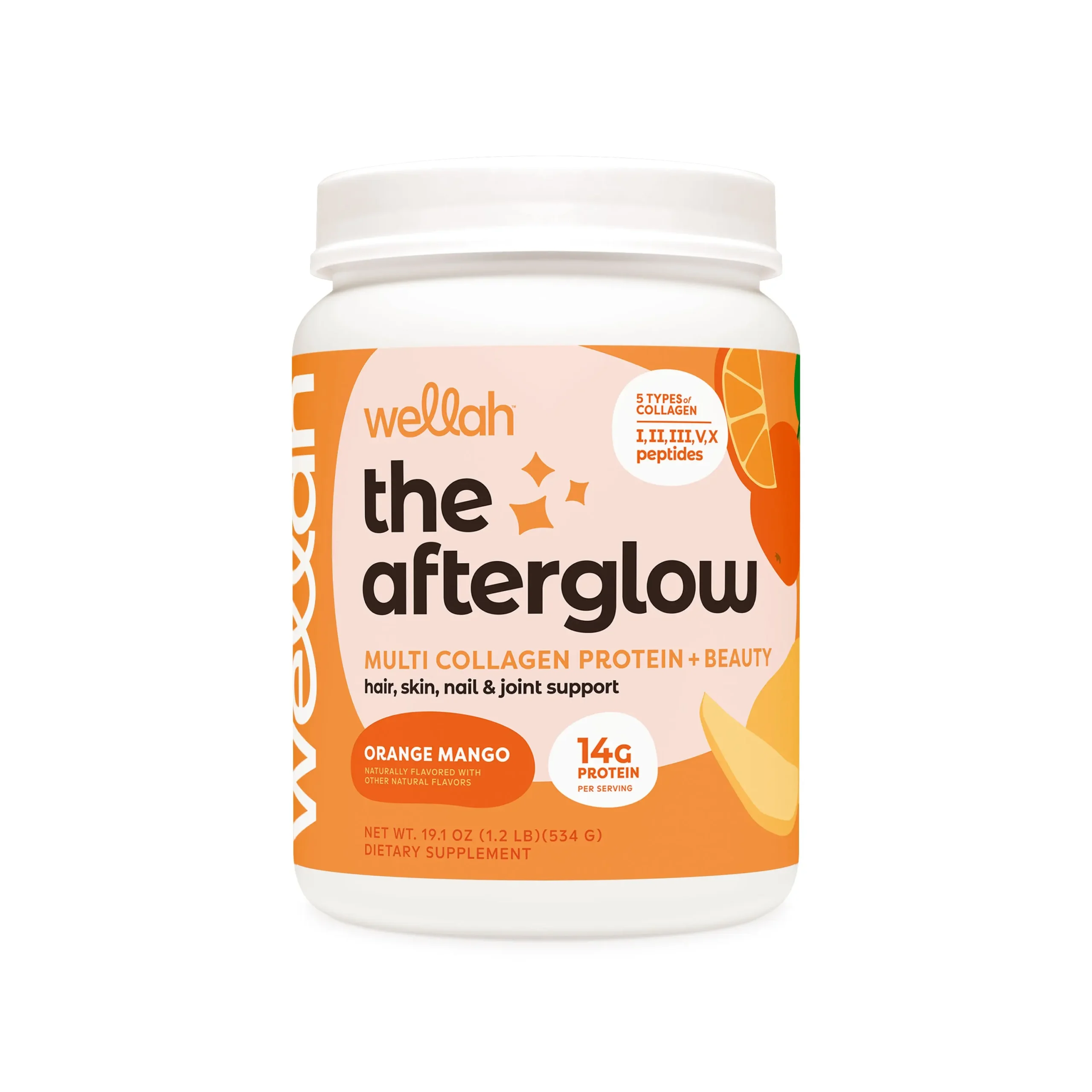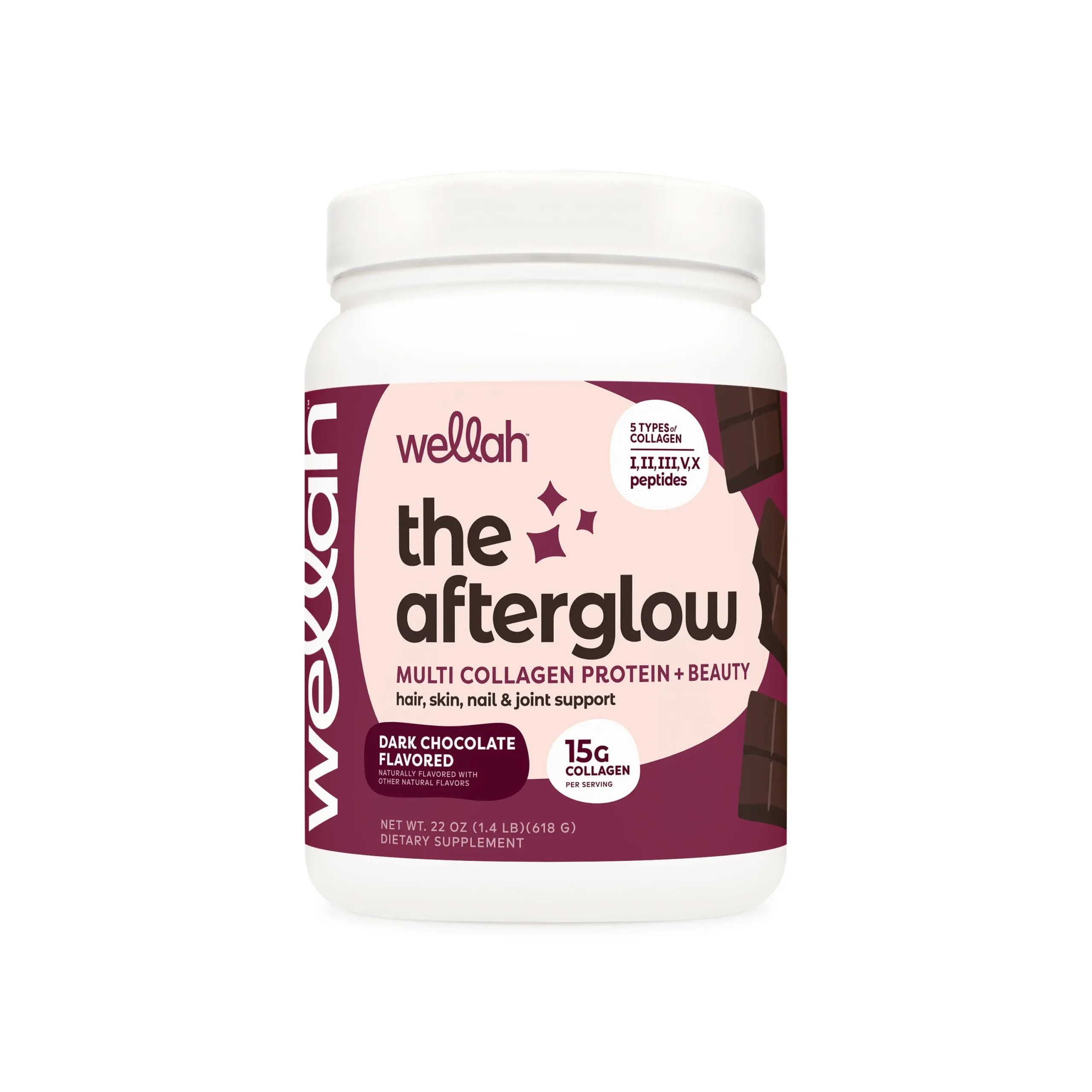 Wellah Afterglow is for anyone seeking a daily boost in beauty and wellness—whether you’re balancing work, family, or self-care. Each serving delivers 15 g of a powerful collagen complex, featuring five types of peptides (I, II, III, V, X) plus 5,000 mcg of biotin, helping you glow with confidence from the inside out.