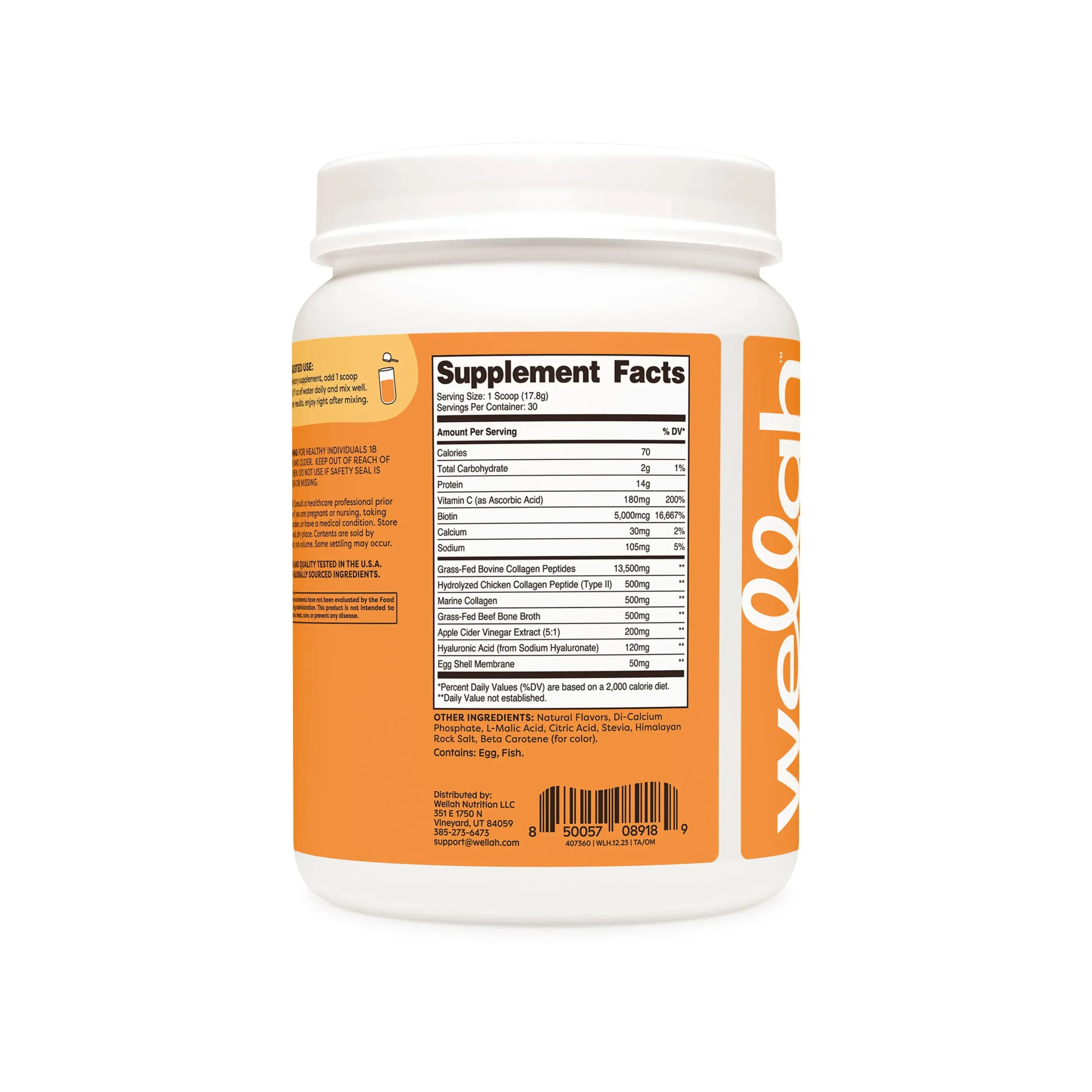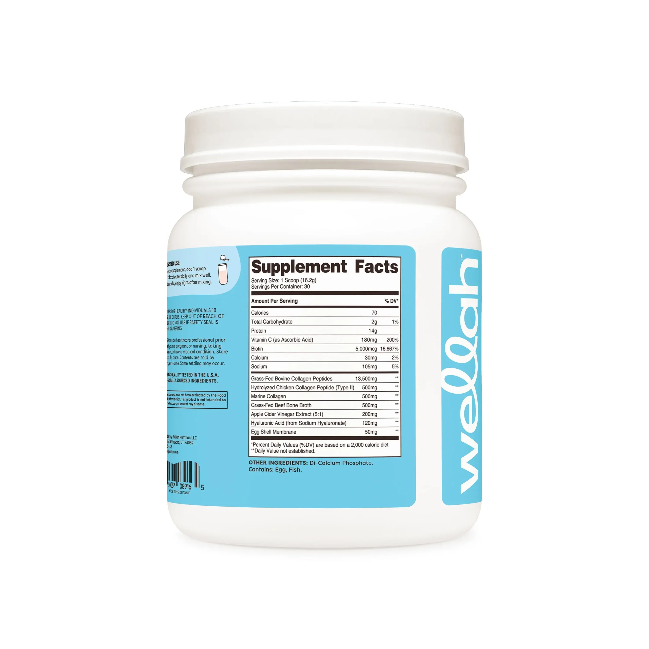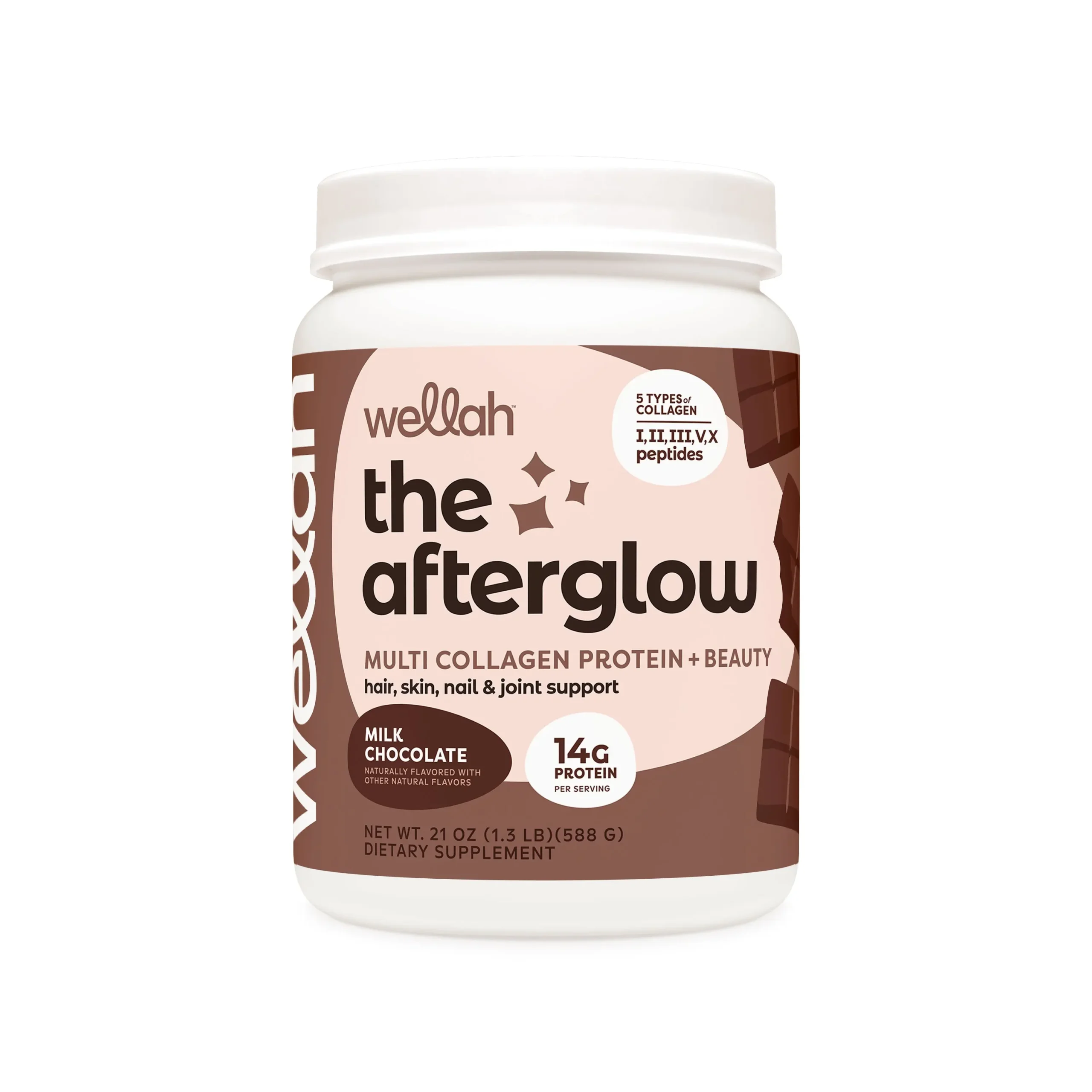Wellah Afterglow is for anyone seeking a daily boost in beauty and wellness—whether you’re balancing work, family, or self-care. Each serving delivers 15 g of a powerful collagen complex, featuring five types of peptides (I, II, III, V, X) plus 5,000 mcg of biotin, helping you glow with confidence from the inside out.