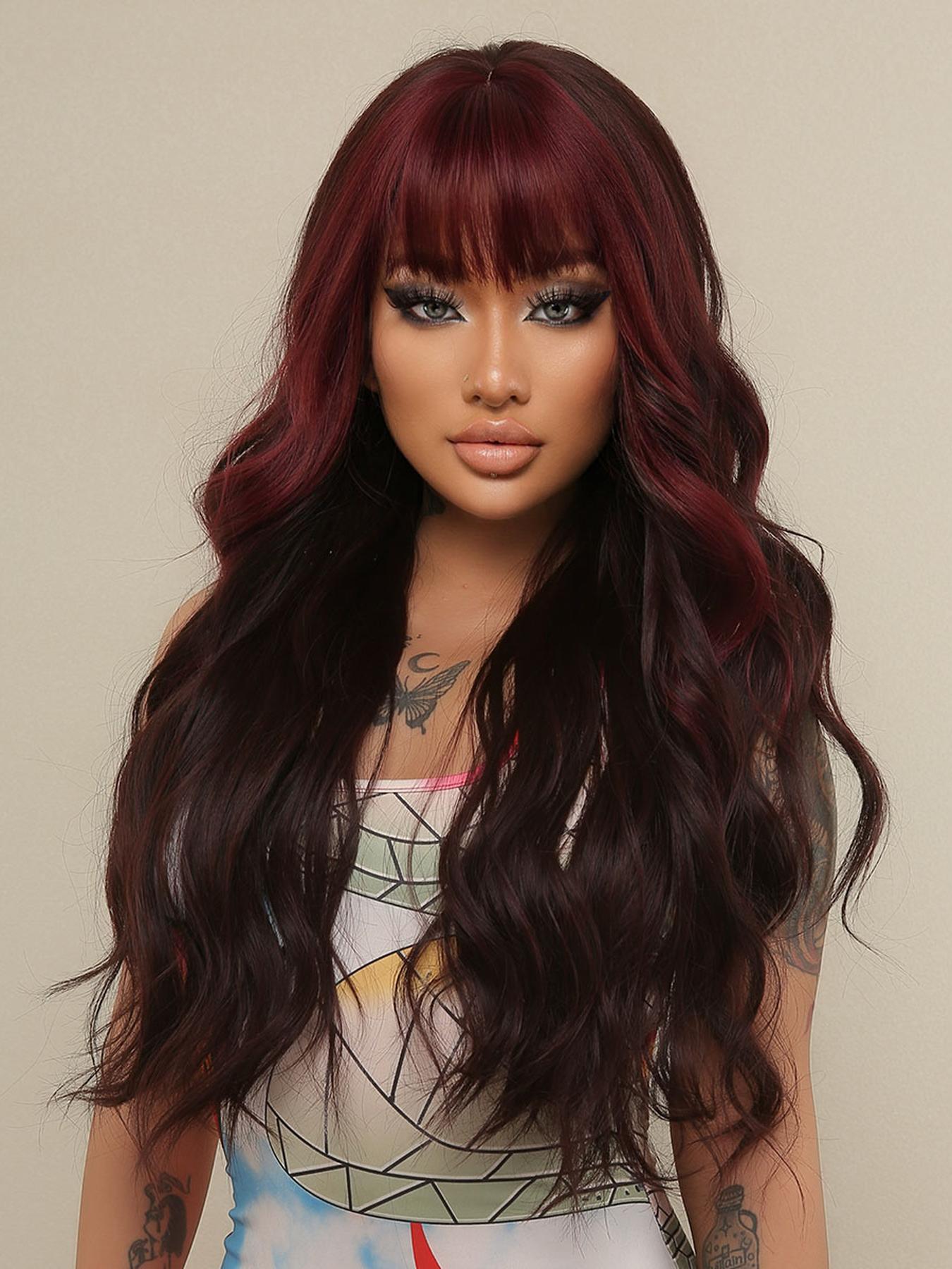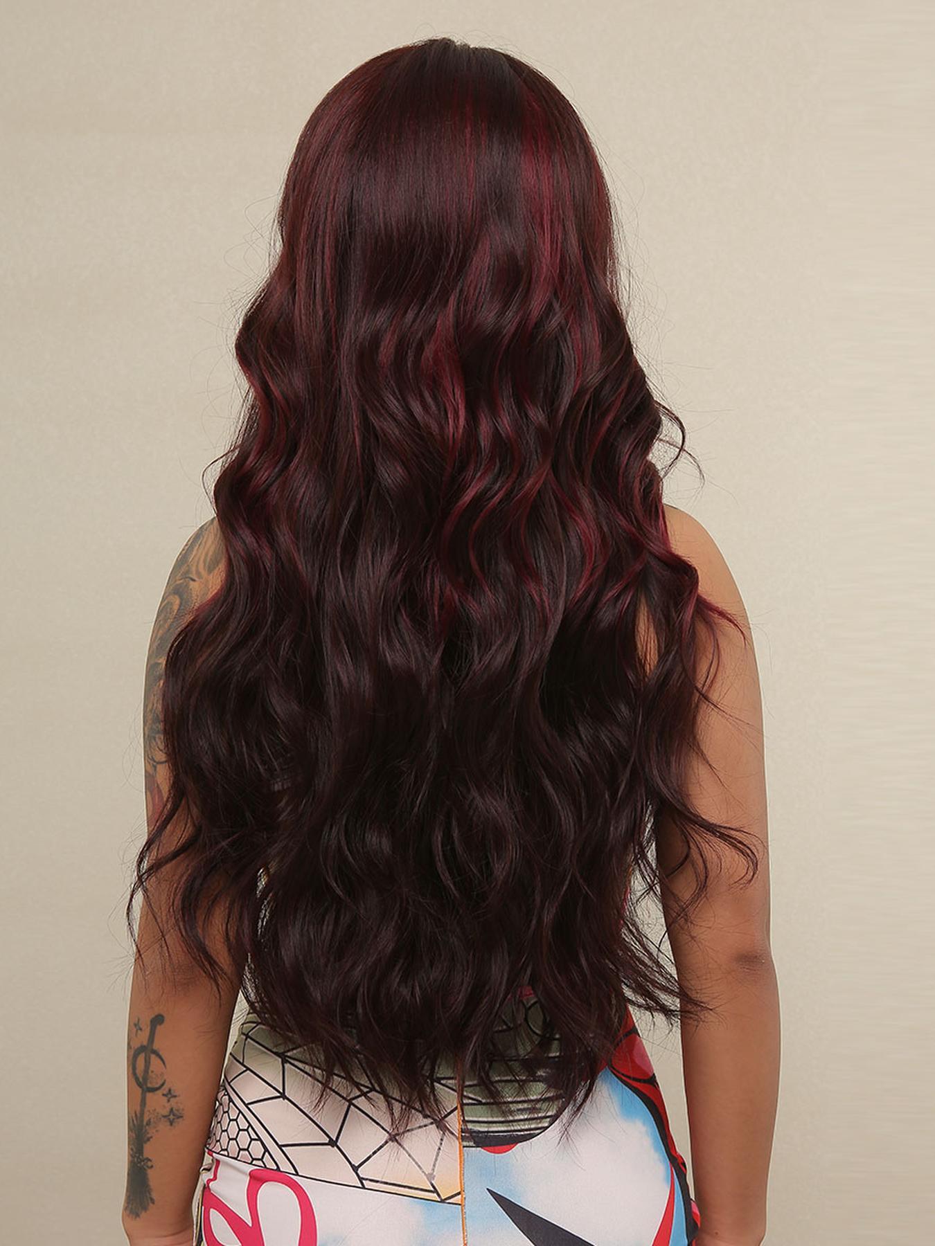 【Vibrant Highlights】: This wig features striking red highlights in a rich reddish-brown base, elevating your look with vibrant color.