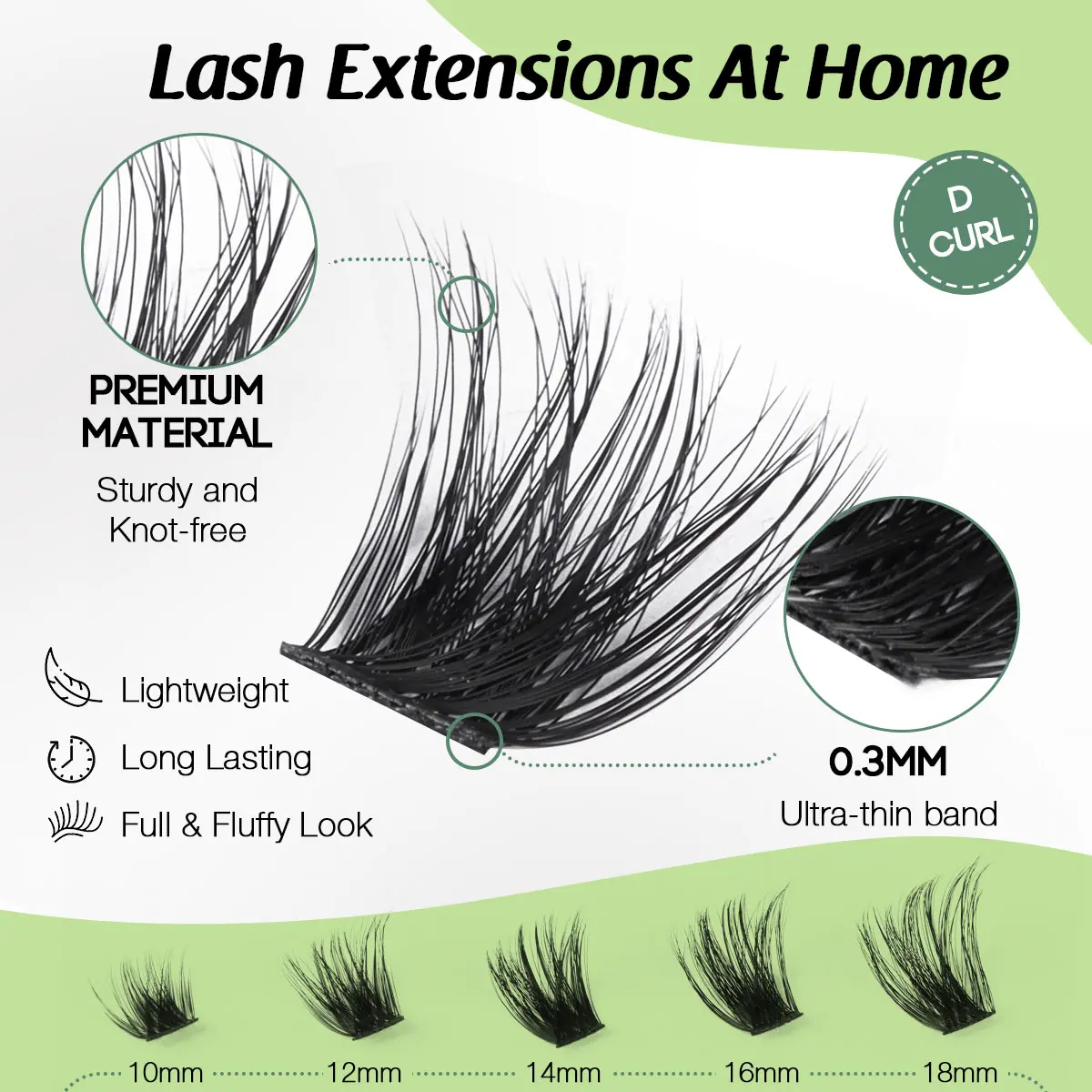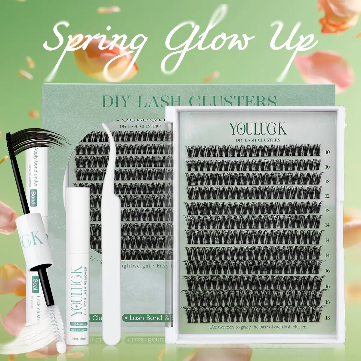 YOULUCK DIY Lash Extension Kit – Cluster Lashes with Glue, Remover, and Tweezer for Beginners.