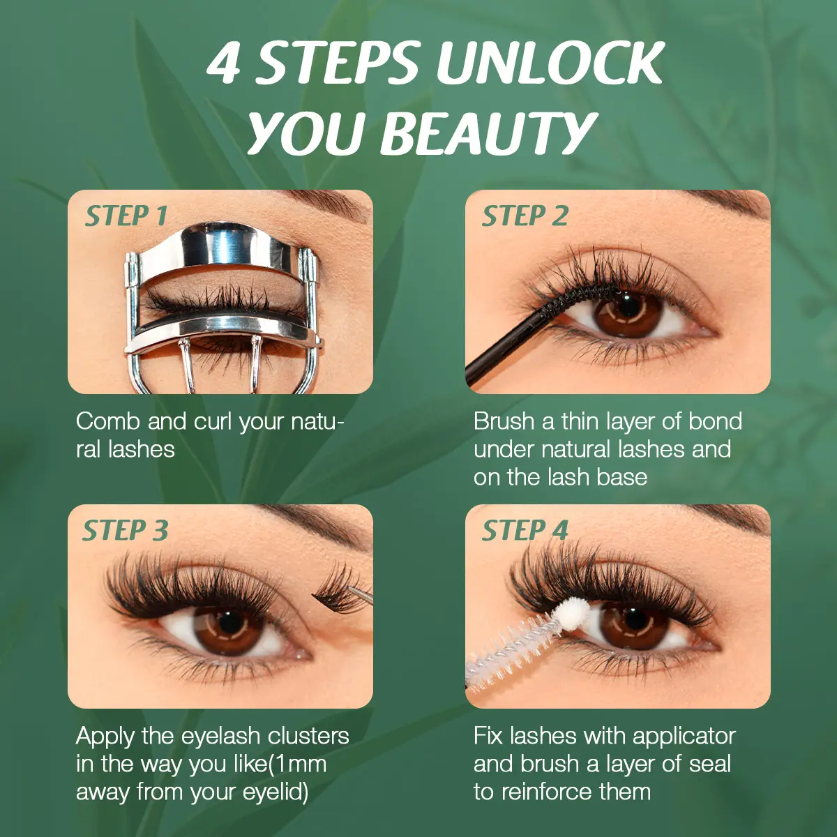 Create beautiful, professional-looking lash extensions in the comfort of your own home. Achieve the popular lash effect effortlessly with our DIY kit. The lash clusters are easy to apply and stay securely in place, saving you both time and money compared to salon visits.