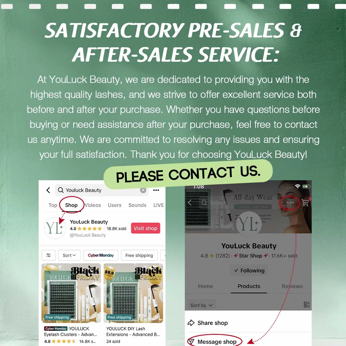 At YOULUCK, we are committed to delivering high-quality products for your beauty needs. If you have any questions or concerns, feel free to contact our friendly customer support team. We promise to get back to you within 24 hours. Enjoy your DIY lash experience!